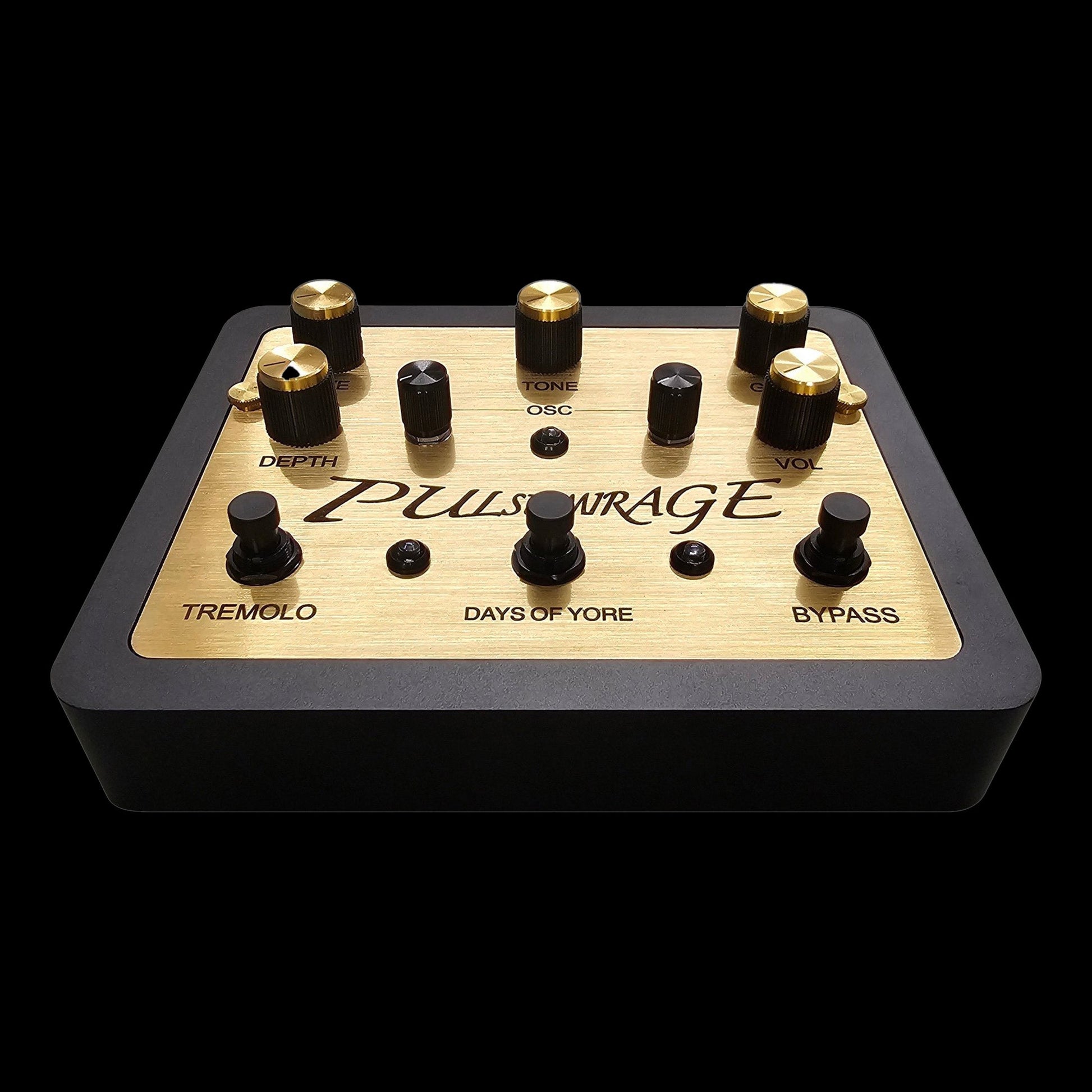 Quench your thirst for imaginative tones with the Pulse Mirage from Days of Yore, a dual oscillator fuzz pedal that delivers a vast range of tonal destruction from rich saturation to full tonal chaos. Whether you are dialing in subtle harmonic enhancement or summoning interdimensional flanging and wah sweeps from the interaction of Pulse Mirage's fuzz, tremolo, and oscillator circuits, this unique effect is sure to bring new musical possibilities to any pedalboard.