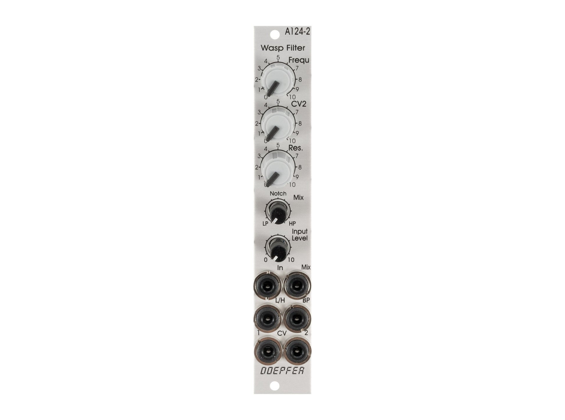 Bring the classic sound and look of the Wasp filter into your Eurorack in a compact 4hp version with Doepfer's A-124-2SE Slim Line Wasp filter module. This module operates and sounds just like the full size version, simply packed into a smaller size. The L/H output's function is determined via a jumper on the back of the module, and there's always a bandpass output available too. If you've somehow never owned the A-124, this Slim Line version is the perfect way to finally add this Eurorack rite of passage to your rig.