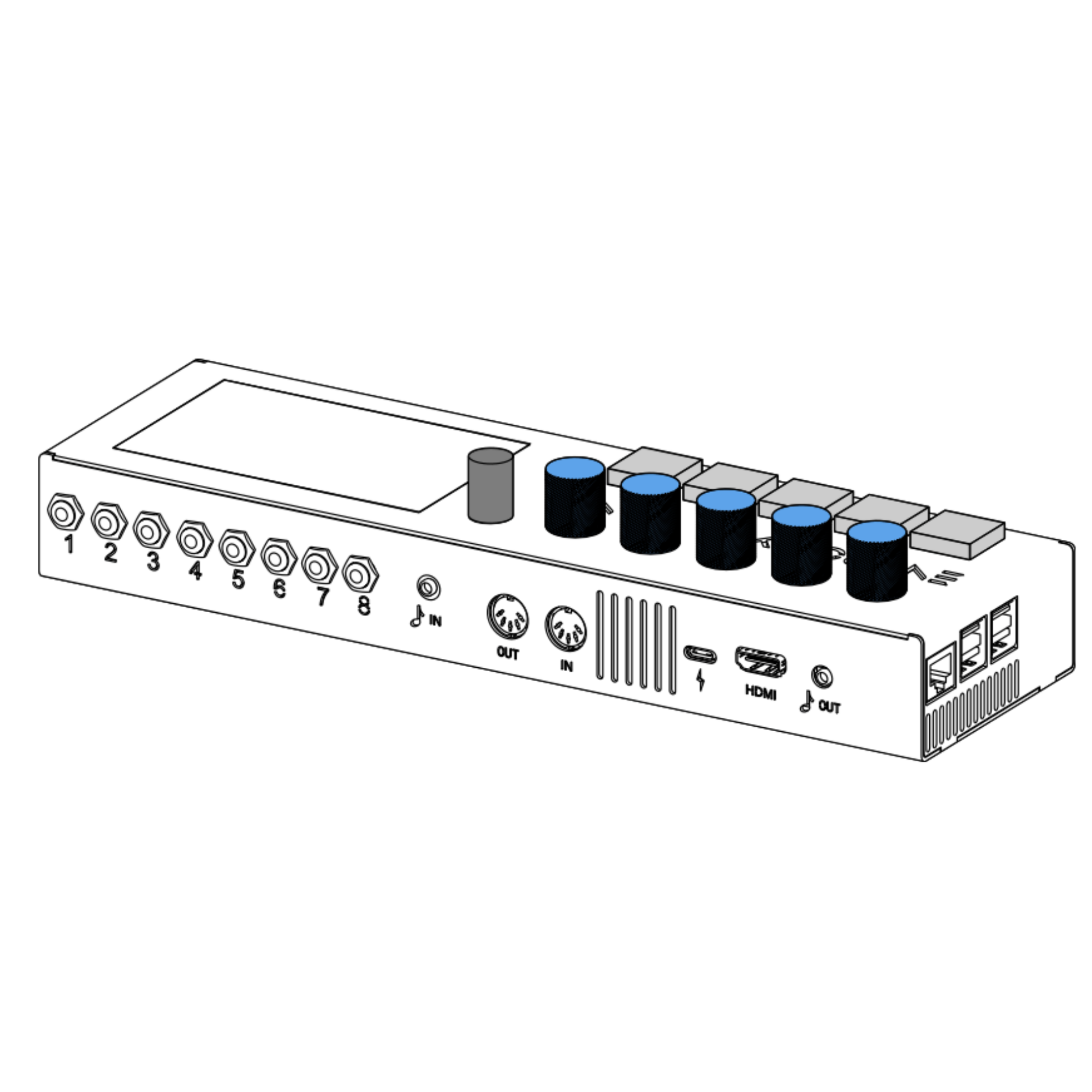 Internally, signals flow through a network of processing units, refered to as modules, which eventually terminates in the HDMI output of the synth. The end result being a stream of HD animation that can be interacted with and controled in a wide variety of ways.