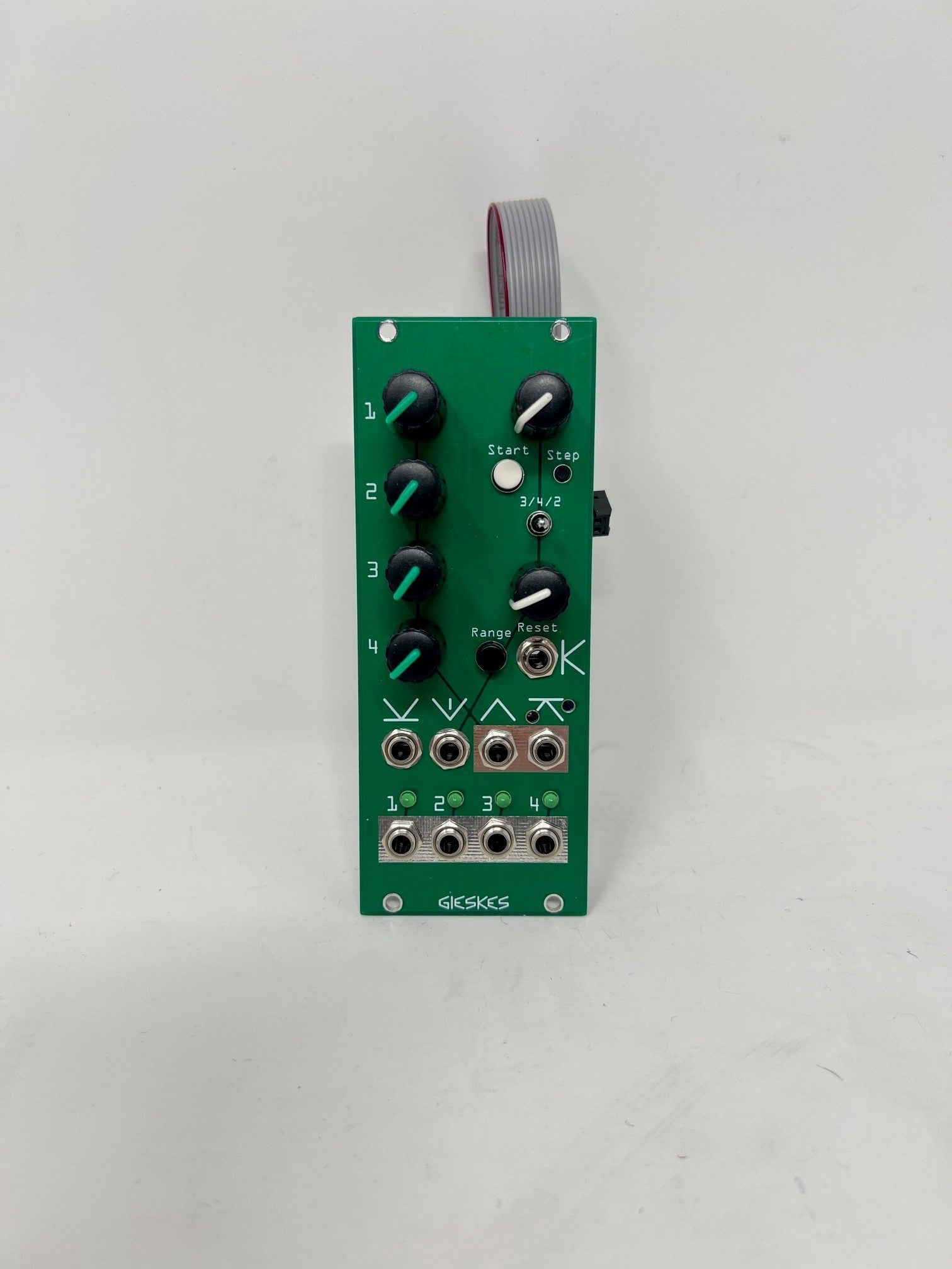 Low frequency mode: Gate reset input is ignored, instead it will hold the sequencer for the duration of the gate signal. (i added this feature because i never use reset in low frequency and the hold feature is verry nice). -