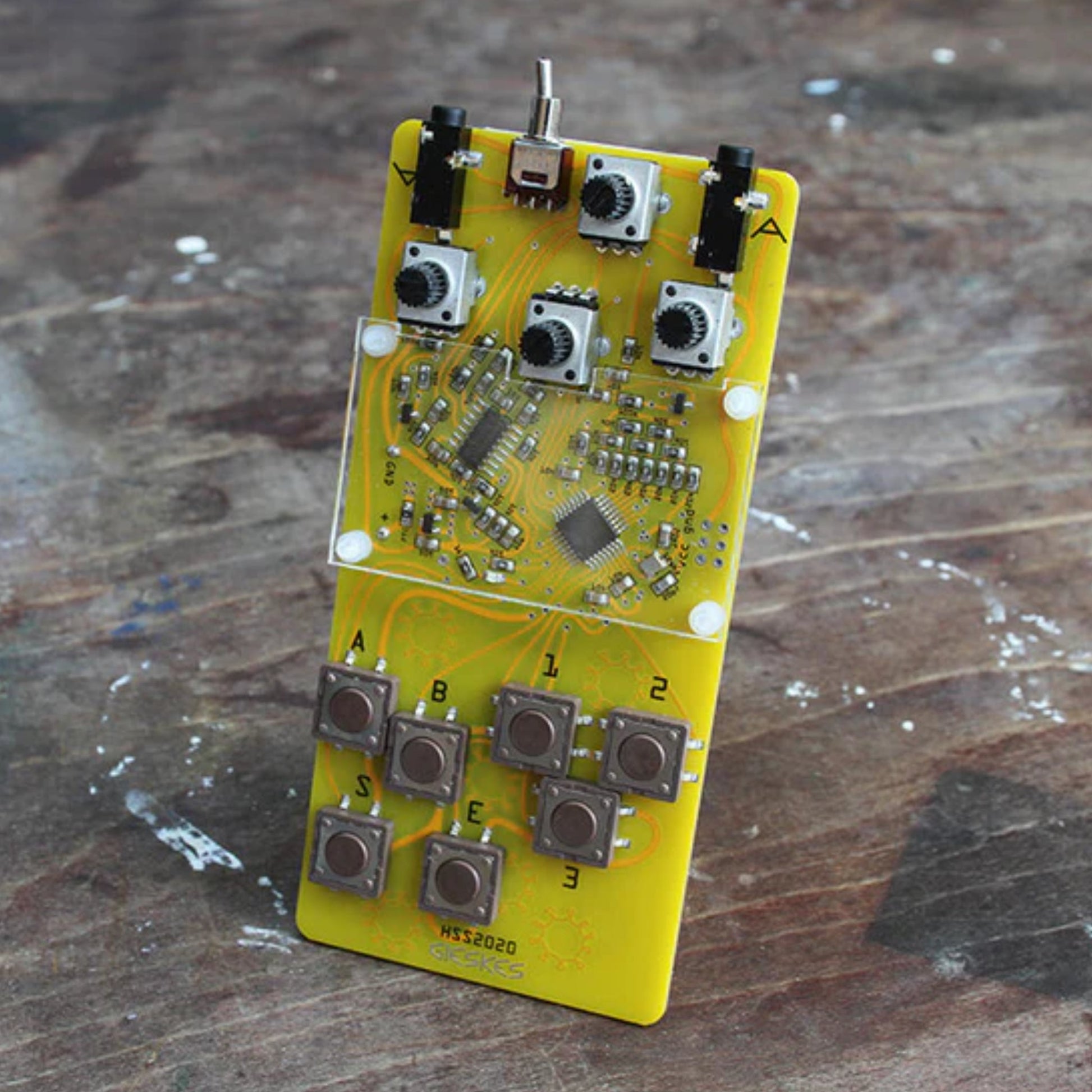 Now in 2020 🦠has arrived and im stuck in a apartment with very little space, what i can do is mostly just things on my computer, developing a pocket operator compatible version of the HSS2 seemed like a good idea for this situation, it is small and there are few components so i could breadboard it here. Looking at the PCB of the original HSS2 i got reminded of the curved traces, i never really used this feature in Fritzing (a feature request i did that got accepted 💪) this seemed like the ideal moment for it. When designing the layout the arduino TQFP package looked like a little 🦠with the via's and the curved traces, fitting very good in 2020.