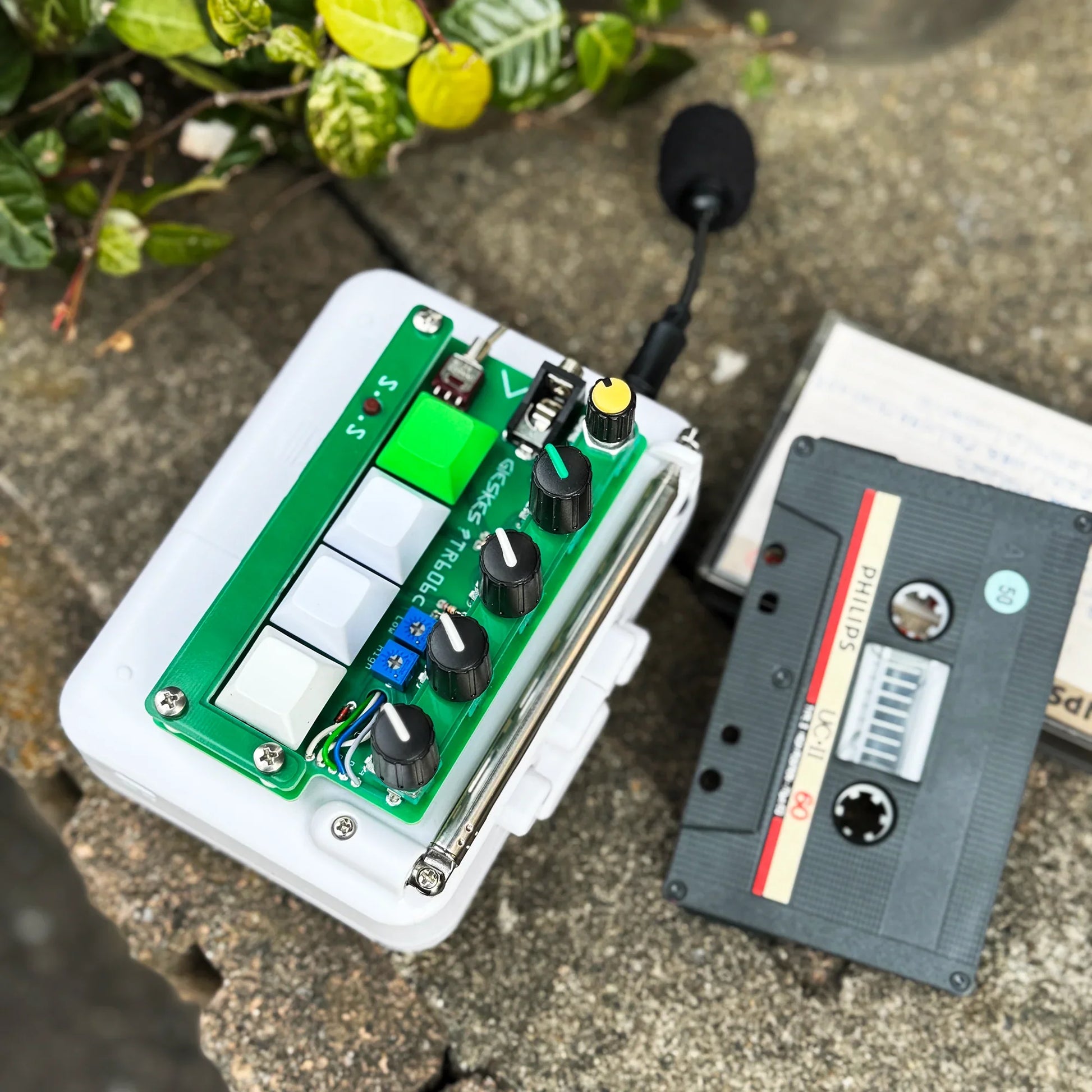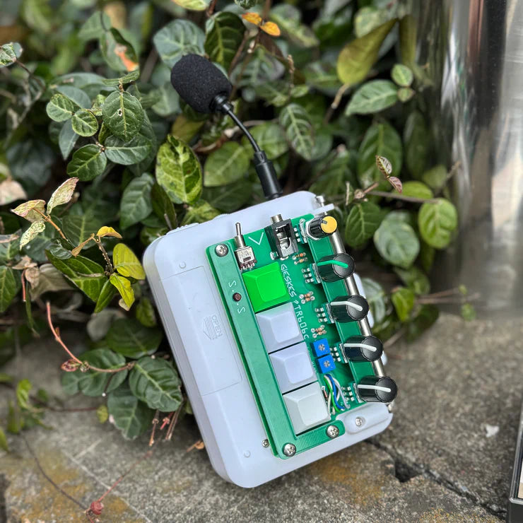A modified TR606 cassette tape Walkman that can be played by switching between 4 preset pitches with a key switch. In addition, the Walkman's playback speed can be controlled with an external CV signal, so you can "scratch play" the tape speed (pitch) with rhythmically synchronized CV from a modular synth or similar external source.