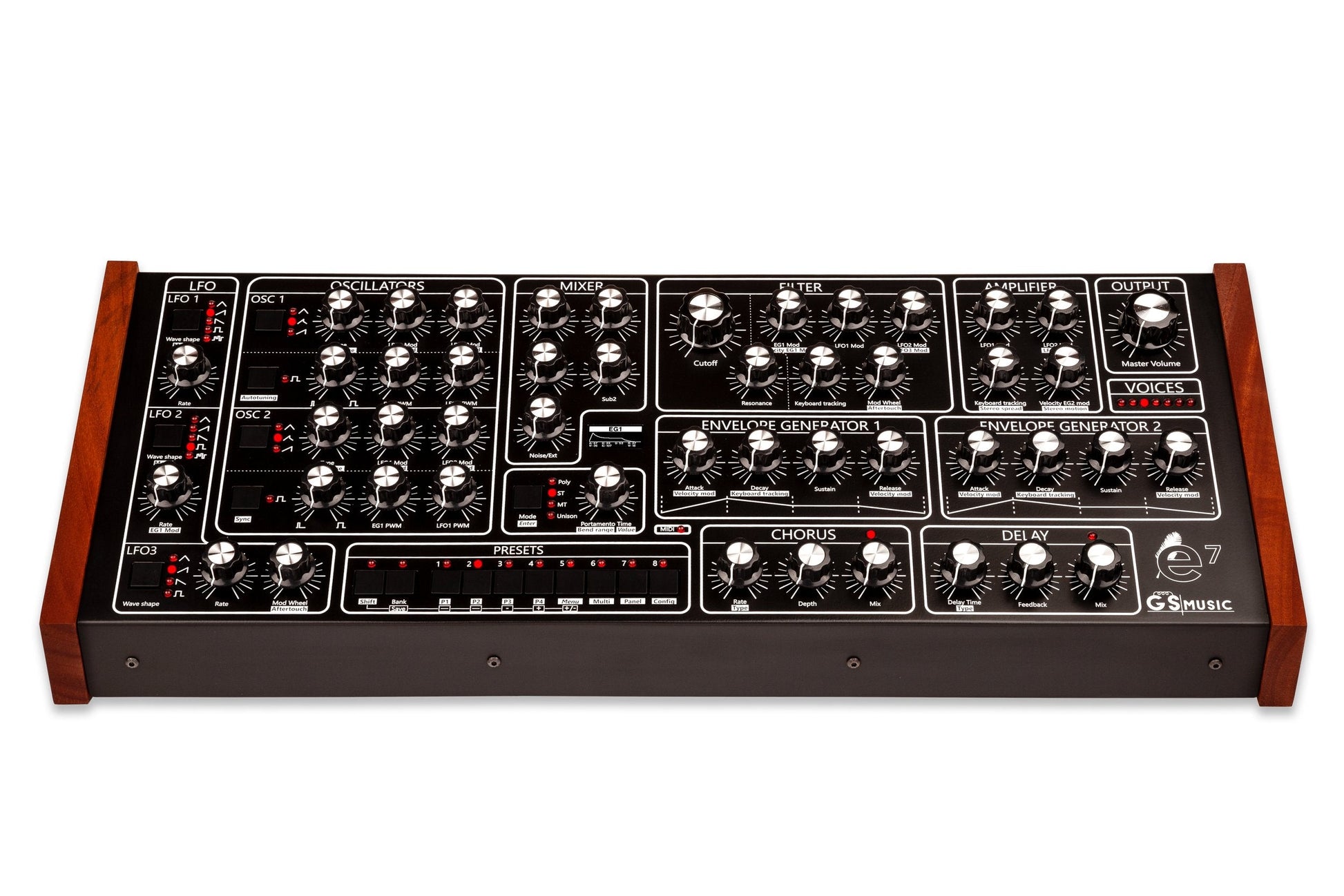 GS Music presents their GS e7, a compelling desktop-sized analog synthesizer with seven voices of polyphony, support for multitimbrality and MPE, plus a host of other features and a phenomenal sound to boot. The GS e7 blends the best of both analog and digital technologies, maintaining a fully-analog signal path on the audio side plus some digital effects at the end, but also leveraging digital control where it counts most. The result is a reliable source of classic analog sounds, but with high levels of configurability for unmatched versatility.
