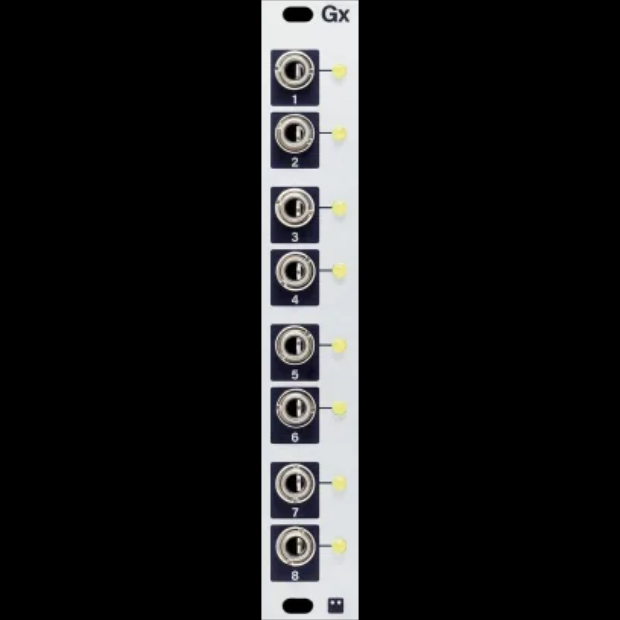 The Gx (Gate Expander) adds 8 additional Gate/Trigger/Clock/Logic outputs to compatible modules like the Metropolix.