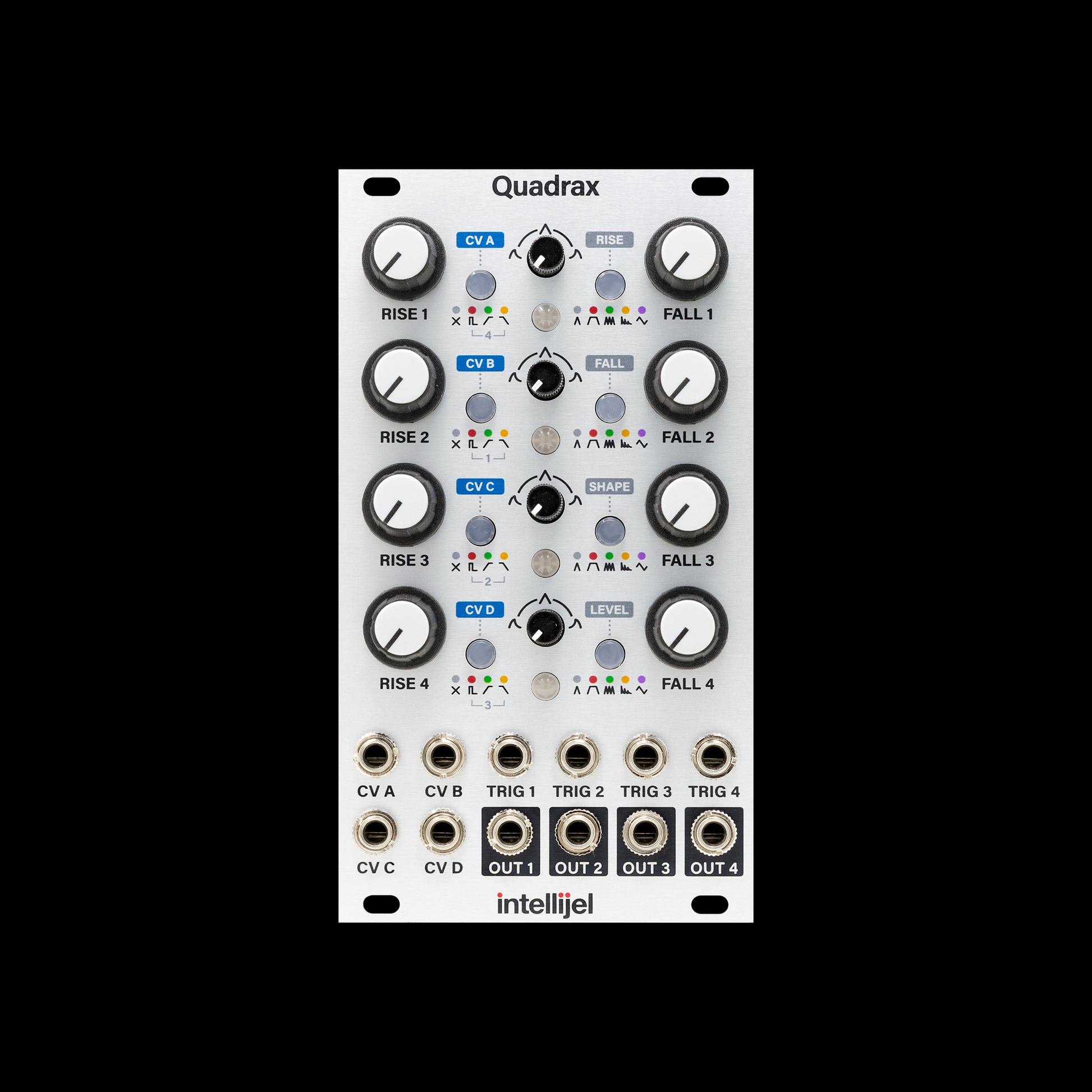The Intellijel Quadrax consists of four independent, CV-controllable channels, each of which can be configured to perform any one of the following functions: