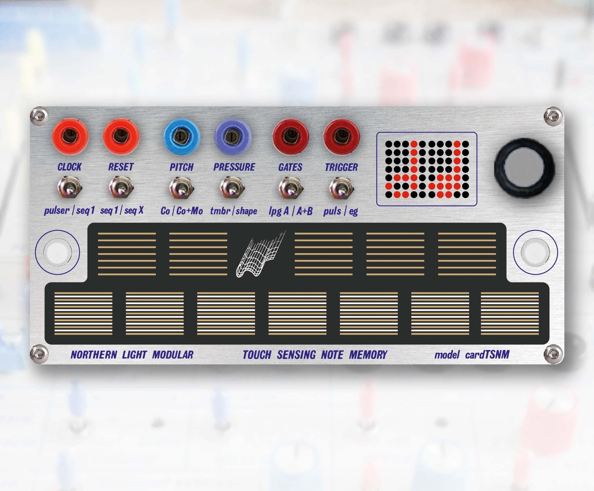 Touch Sensing Note Memory is a performance oriented keyboard controller featuring 12 note plates (tunable over 6 octaves) and two transposition buttons (variable transposition distance from -36 to +36 semitones).
