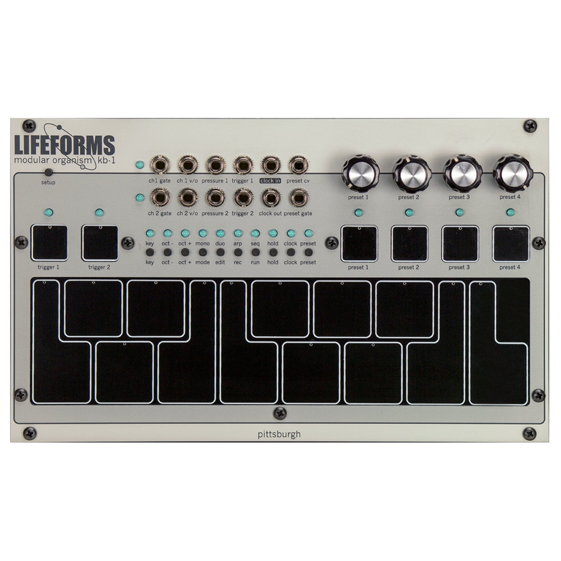 Take control. Shape your music like never before with the new Lifeforms KB-1; a unique and intuitive set of tools designed for controlling your eurorack modular system. The Lifeforms KB-1 provides a multi-function, expressive, capacitive touch keyboard designed for performance. The KB-1 contains a powerful one octave adjustable, pressure sensitive keyboard complete with arpeggiator, step sequencer, four voltage memory pads and two trigger pads. Eleven outputs and a deep feature set enable you to explore new sonic territory with an unprecedented level of control.