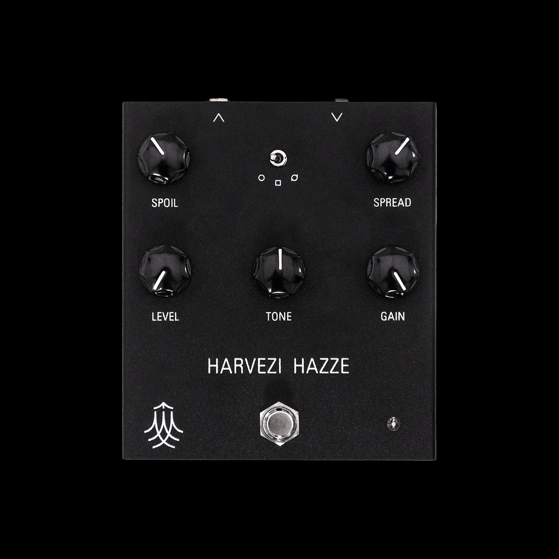 Explore unique distortion and waveshaping with Harvezi Hazze, a waveshaping effect pedal designed around a unijunction transistor, delivering flexible saturation from warm distortion to wild feedback. All of these wide and varied tones can be smoothly transitioned between, providing a highly versatile effect ready to warp your tone in a moment's notice. Within its unique circuit, Harvezi Hazze's signal chain runs first through a fixed-parameter compressor, into a distorting amp and waveshaper, then fed through an optional additional tone stack before sending out to the world in all its distorted glory.