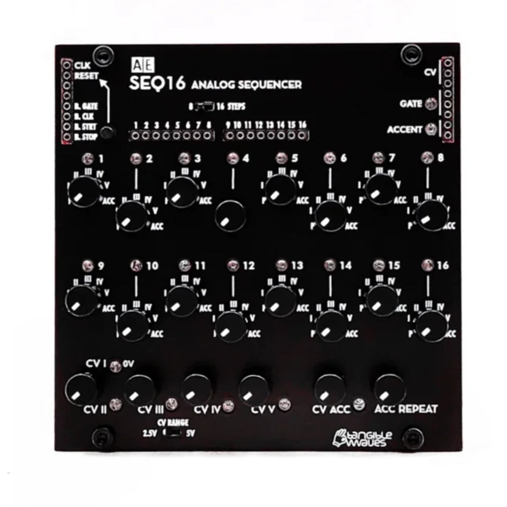 The SEQ16 is a 16-step sequencer for controlling oscillator pitch and triggering envelopes.